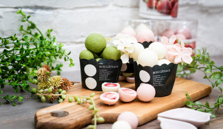 ポーランド産のフリーズドライの苺をホワイト、ストロベリー、抹茶の チョコレートで包みました。 1種類でもお楽しみいただけますが、ホワイトとストロベリーなら紅白、 3種類すべて並べると、お団子のようにかわいらしく、祝い菓子としても 最適です。